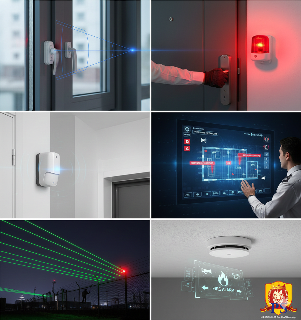 Advanced alarm systems that detect unauthorized entry, intrusion, or emergencies and trigger immediate alerts.